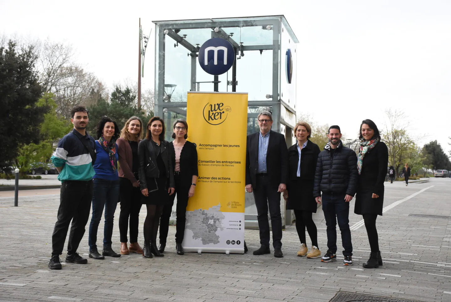 L’équipe organisatrice, de gauche à droite : Colas MERAND (responsable communication, We Ker), Deborah SCHEER (chargée de mission, We Ker), Céline CADIOU (Responsable Communication interne et citoyenne, Keolis), Emmanuelle MARCHAND (Responsable du pôle Relation Entreprise, We Ker), Armelle BILLARD, Directrice communication, Keolis), Philippe SALMON (Président de We Ker et Vice-Président de Rennes Métropole, Fabienne CANUT (Directrice, We Ker), Pierre-Yves HANTRAYE (chargé de mission, We Ker), Julie GEHAN (Responsable Recrutement et Développement RH, Keolis)