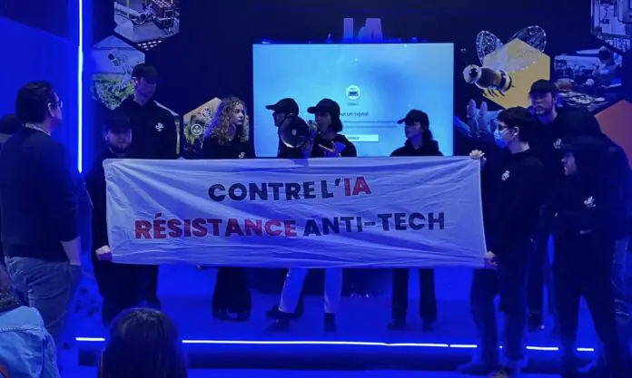 Hier, une vingtaine de jeunes activistes du collectif Anti-Tech Resistance a occupé durant quelques dizaines de minutes le village de l’IA du CFIA de Rennes. Leur objectif : dénoncer l’impact croissant de l’intelligence artificielle sur l’agriculture et ses conséquences pour les paysans.