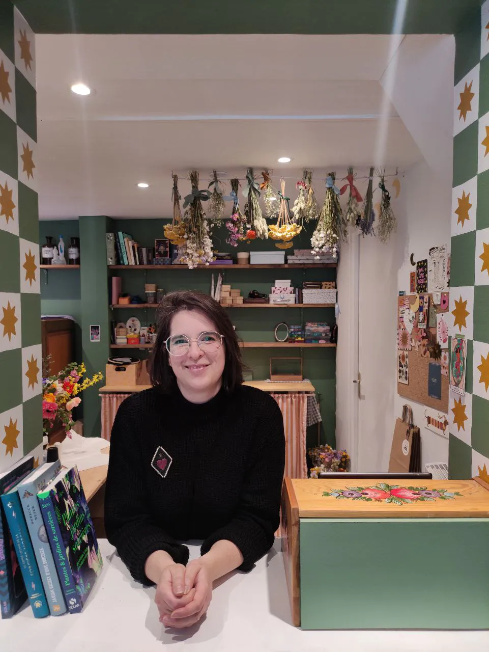 La boutique L’Étoile – objets magiques – sa devanture grise anthracite et son lettrage arrondi -, est digne de celles des chemins de traverses d’Harry Potter. Marine Genevois a ouvert un espace personnel où l’on se sent bien accueilli dès qu’on franchit le pas de la porte. « C’est comme entrer dans une petite maison, un petit cottage de sorcières », sourit-elle derrière sa caisse. Idéale pour faire des cadeaux à ses proches ou soi-même, elle est à l’image de Marine et de son univers artistique qu’elle développe sous le nom de Petite Colère. Dans un intérieur joliment composé d’anciens meubles en bois chinés, avec des bouquins de fleurs séchées confectionnées par ses soins accrochés de-ci de-là, la créatrice propose de découvrir ses curiosités brodées. « L’idée était vraiment d’ouvrir mon atelier aux personnes, mais que ce soit aussi une boutique. »