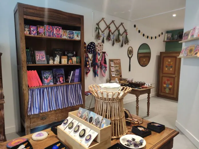 On trouve aussi des produits en lien avec la spiritualité et la Wicca : des tarots et des oracles, des livres d’initiation au tirage de cartes et des ouvrages sur les plantes médicinales, des bâtons de fumigation et des encens en cônes, des bougeoirs et des chandelles. Mais aussi des affiches et des tasses, toutes plus mignonnes les unes que les autres. « L’idée n’est pas d’ouvrir une boutique d’ésotérisme exhaustive », souligne-t-elle, avant de préciser : « Je n’aime pas vraiment ce terme, en plus, je le trouve un peu élitiste. »