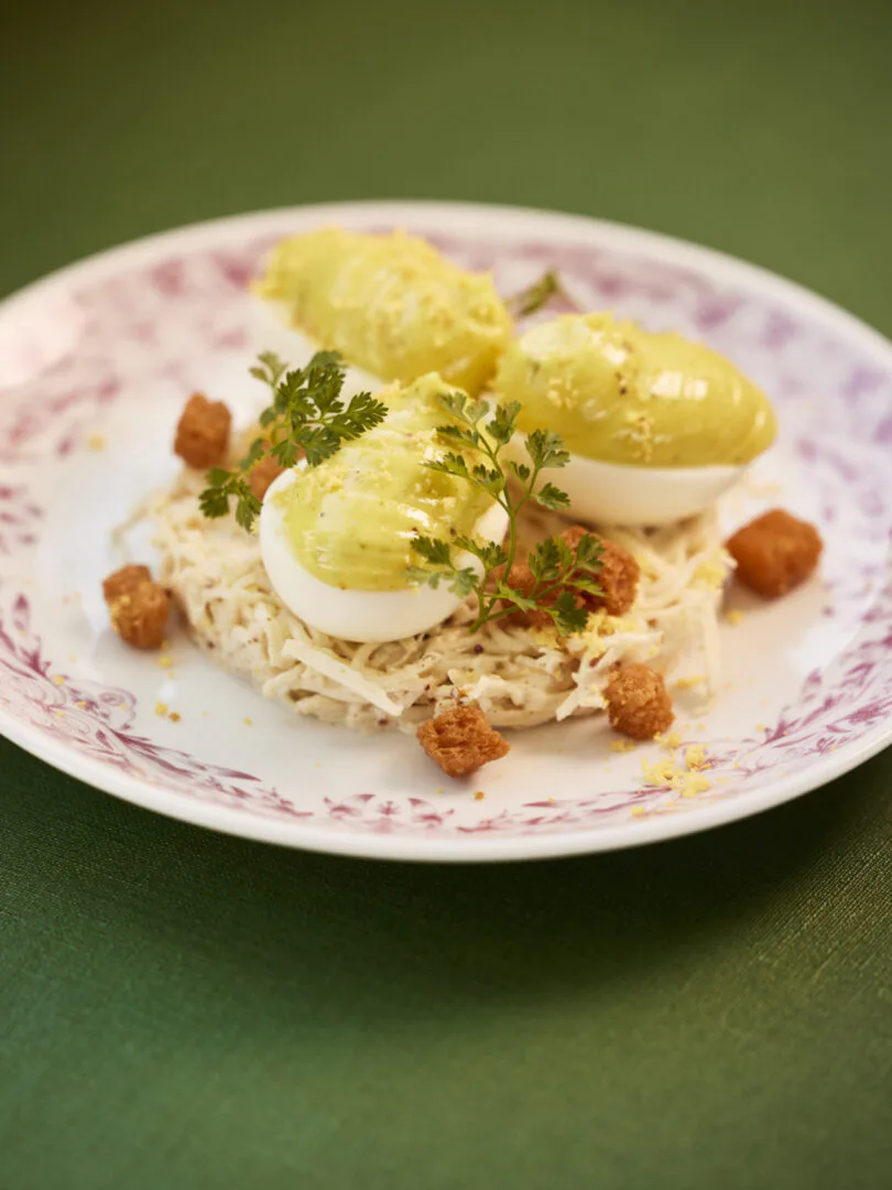 Glissons vers le menu, puisque c’est avant ce qui nous intéresse. Les curieux le trouveront détaillé sur internet ici. Les entrées sont plutôt appétissantes et relativement originales. Nous avons opté pour une mise en bouche à base de praires gratinées, viennoise au jambon cru, suivies du traditionnel œuf mayonnaise revisité façon MAMA. Dans le premier cas, si l’on excepte un salage hors de propos pour la première praire, les autres sont plaisantes en bouche, la saveur agréable ; pour autant la taille des praires nous a paru petite pour un restaurant situé au cœur de la Bretagne. L’œuf mimosa est proposé avec une mayonnaise parfumée au curry ; les trois demi-œufs sont présentés sur un lit de céleri frais qui égaye le palais. Ce grand classique revisité reste une valeur sure et au tarif relativement sage de huit euros.