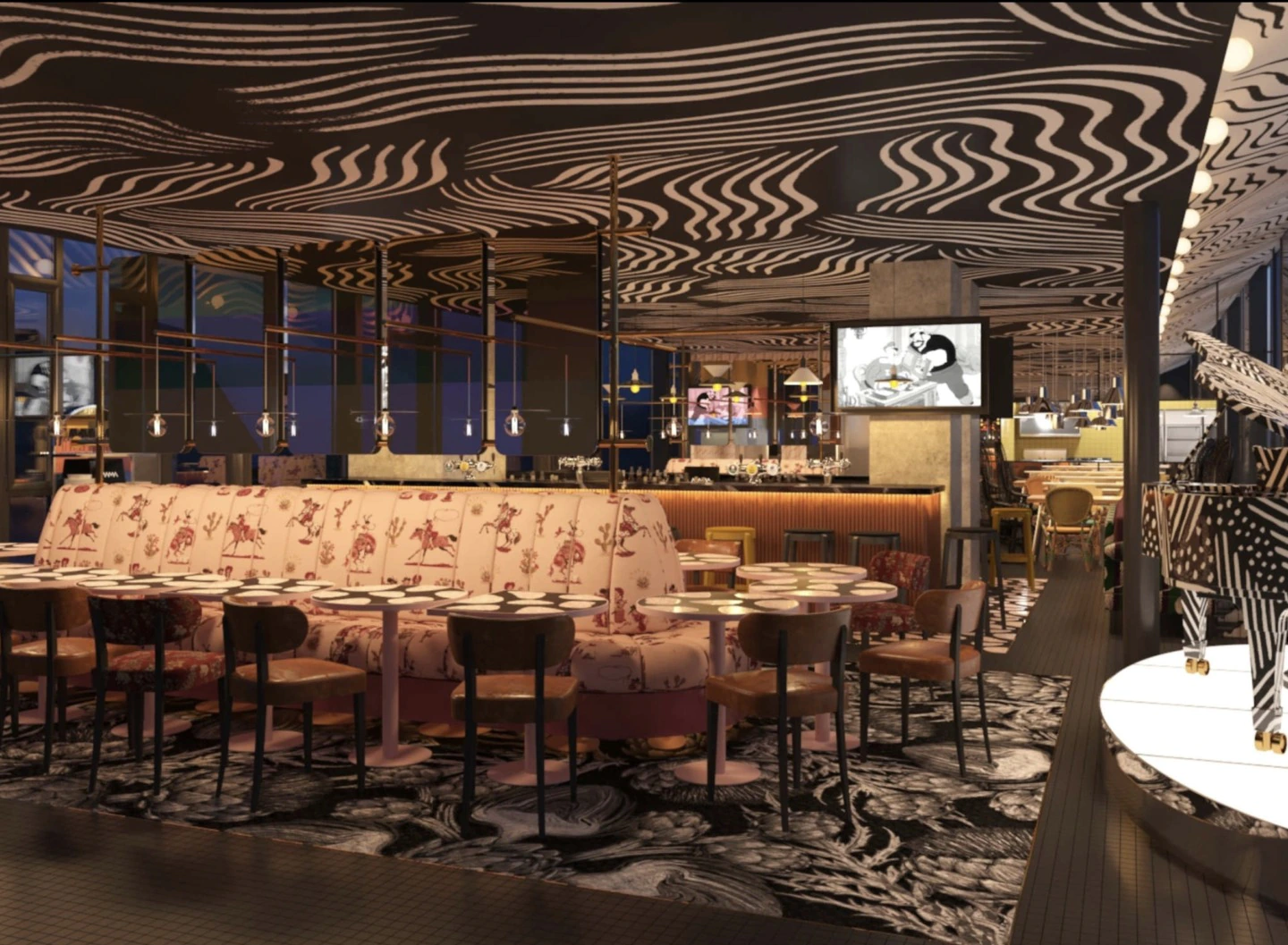 D’ailleurs, parlons-en de ce restaurant Mama Shelter. Largement éclairé par de larges baies vitrées qui partent du sol, il est tout en longueur, orné d’un plafond mouvementé qui reprend schématiquement les contours des côtes bretonnes. Les tissus des fauteuils proposent de nombreux et différents motifs, comme celui des banquettes roses à décor de personnages chinois, les cousins largement distribués, offrent une sensation de confort « comme à la maison ». Des écrans accrochés en des emplacements stratégiques diffusent, pour notre plus grand plaisir, d’anciens épisodes de Happy days au cours desquels Richie Cunningham, jeune Américain des sixties, ne sait pas encore qu’il deviendra l’immense réalisateur Ron Howard. Bien entendu, Fonzie est là aussi…