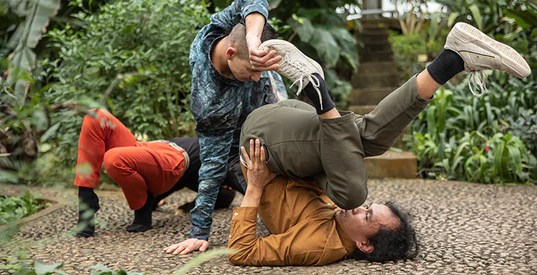 L’édition précédente avait été l’occasion de découvrir l’univers du duo d’artistes associés Clédat et Petit-Pierre. Cette saison s’ouvrira sur celui du nouvel artiste associé, le Rennais Bruce Chiefare. Quatre spectacles seront présentés dans les jardins du Triangle, un trio et trois soli dont un du chorégraphe hip hop, spécialisé dans le break. « Bruce Chiefare a, à un moment dans son parcours, fait un break et s’est tourné vers la nature et la culture du bonsaï », souligne Patrice Le Floch. « Il s’est intéressé à la question du Vivant, de la lenteur du Vivant qui s’installe dans le temps. Il a puisé dans cette démarche l’inspiration pour ses créations chorégraphiques. » Sa démarche originale donne à voir autrement le hip hop, où le corps devient un reflet de la nature en chorégraphie. Ce temps entre nature et culture proposera aussi un atelier « construction de marque-page végétal » et des visites de l’exposition Danse contemporaine en questions accrochée dans le hall d’entrée. Les Cols verts fêteront à cette occasion la cinquième édition de leur événement Potager des cultures. Cette rentrée puissante dans sa connexion avec la nature résonne avec la manière de penser une programmation en lien avec le territoire dans lequel la cité de la danse s’inscrit.
