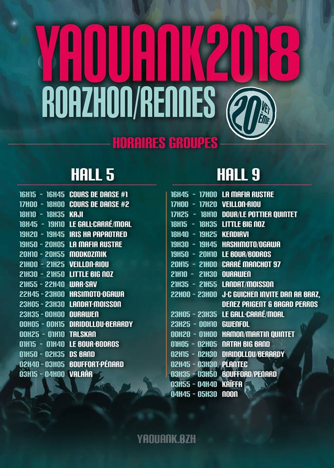 La 20e édition de Yaouank du 1er au 17 novembre 2018. Tarif : 20 € la place pour le parc des expositions le 17 novembre. 15 € pour les 3000 premiers. Gratuit pour les moins de 18 ans. Plus d’informations : yaouank.bzh/billetterie