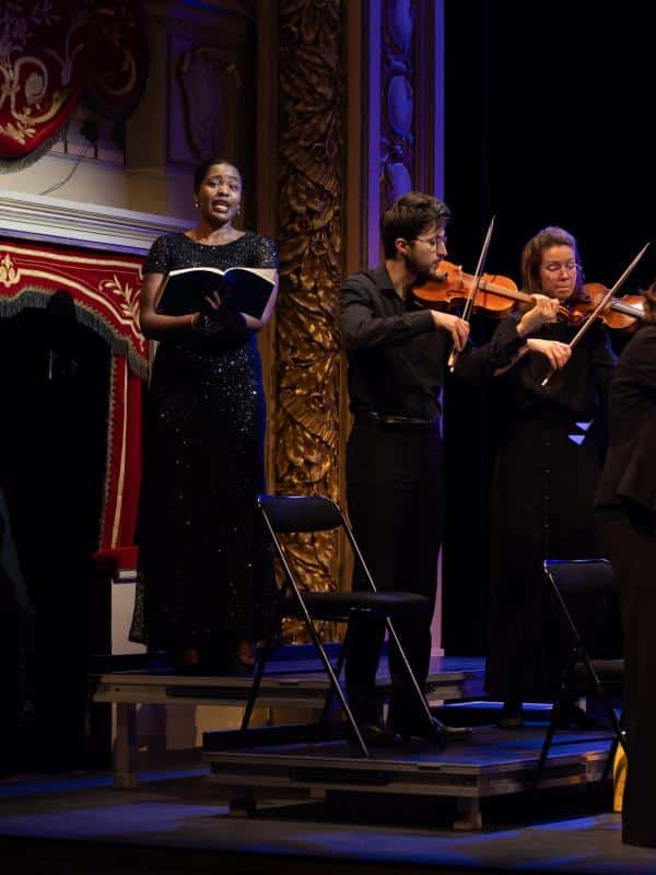 Cela explique beaucoup de choses : d’abord, l’absence de mise en scène et le positionnement des chanteurs, debout face au public, comme à l’église. Cela n’empêchera pas l’opéra de pointer son nez à plusieurs reprises et à l’œuvre de frôler la transgression… pour notre plus grand plaisir.