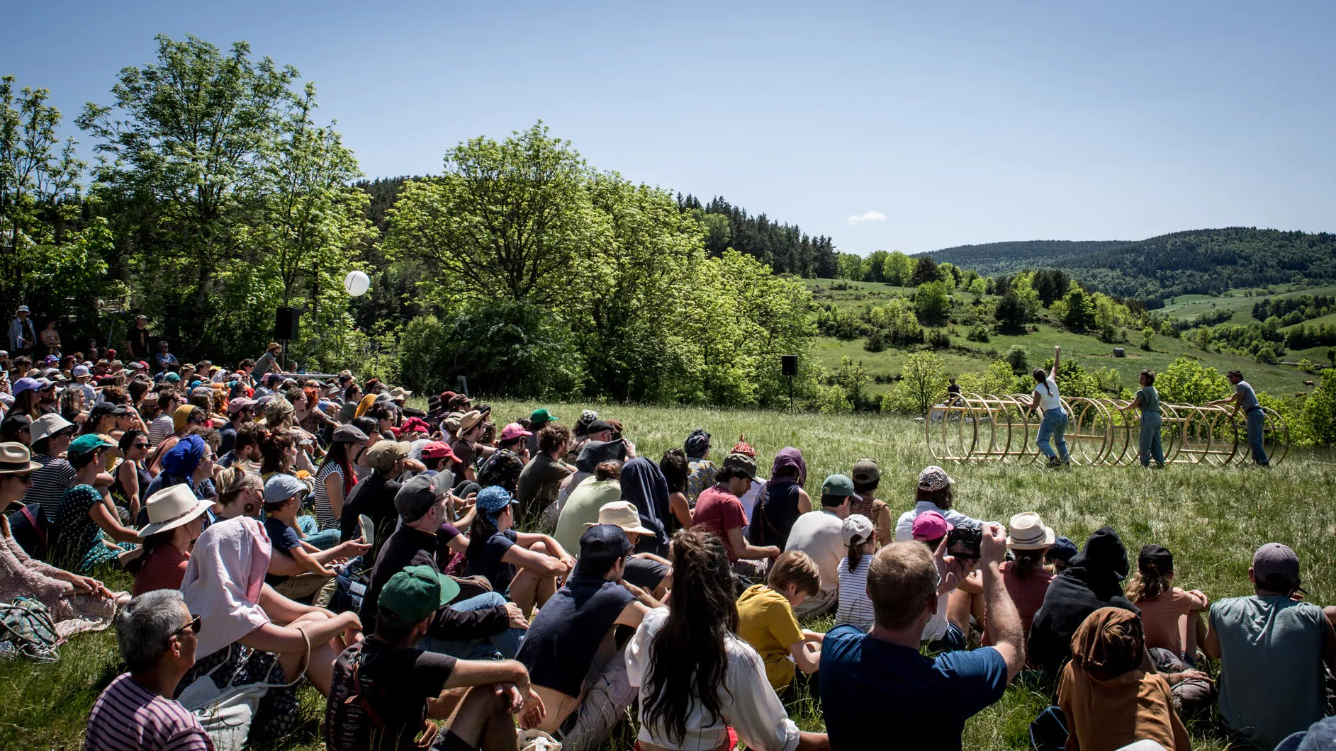 Le public n’est pas simplement assis à contempler le spectacle, il se déplace et change de points de vue au fil de l’avancée de l’histoire : déplacements dans l’espace, migration d’un lieu à un autre et changements de perspective. Aude Liabeuf parle de « la question du zoom et du dézoom » qui s’inscrit dans les choix scénographiques de la compagnie. « Le fil dramaturgique avec la scénographie, c’était de partir de l’idée de cartographies, d’un plan cadastral. Il y avait l’idée de faire décoller, au sens propre et figuré, la carte. » Avec ce jeu des échelles, du petit et de l’immense, Rotofil plonge collectivement le public dans le milieu agricole et ses innombrables points de fuite…