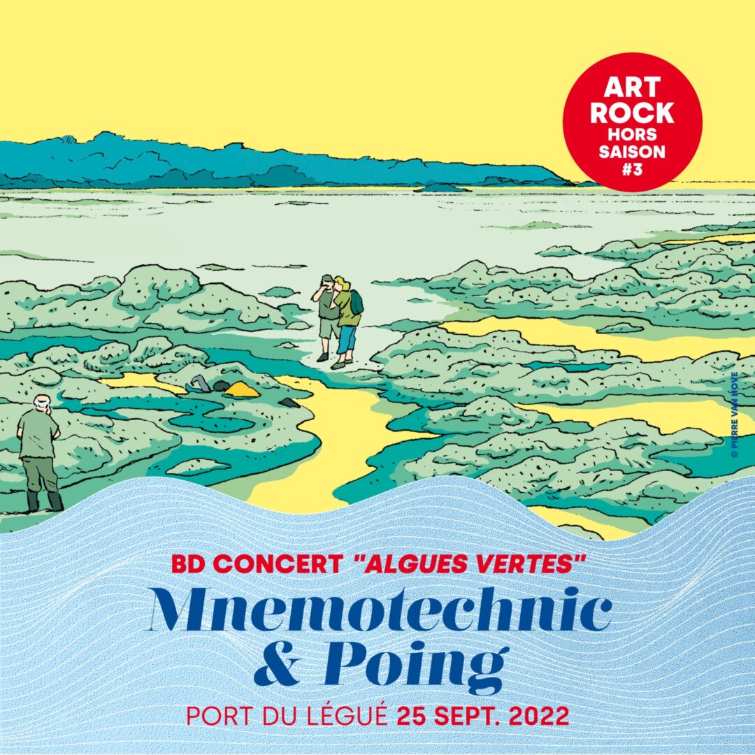 C’est le même François Joncour, sous son alias Poing, qu’on retrouvera le lendemain soir au port du Légué. Avec le groupe rennais Mnemotechnic, ils présenteront le BD concert tiré d’Algues vertes, l’histoire interdite. Paru en 2019, l’ouvrage de la journaliste Inès Léraud, illustré par Pierre Van Hove, a fait date dans la dénonciation de ce fléau écologique des côtes bretonnes, dont est malheureusement trop souvent témoin la baie de Saint-Brieuc. Et c’est justement sur un parking faisant face à la baie, sur les « lieux du crime », que sera représenté ce spectacle mêlant narration, images animées et musique, dans un registre noise et rock, concluant sur une note à la fois engagée politiquement et artistiquement novatrice ce nouveau week-end Art Rock.