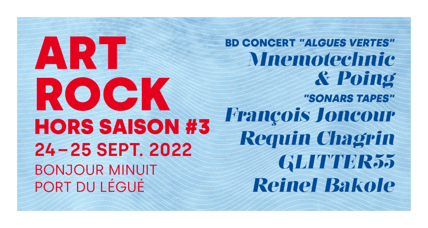 Art Rock est de retour plus tôt que prévu ! Le festival phare de Saint-Brieuc propose un week-end hors-saison les 24 et 25 septembre 2022, un concentré de ce qui fait son identité : variété et pluridisciplinarité. Rendez-vous le samedi pour une soirée de concerts à Bonjour minuit, puis le dimanche pour un BD concert sur le port du Légué.