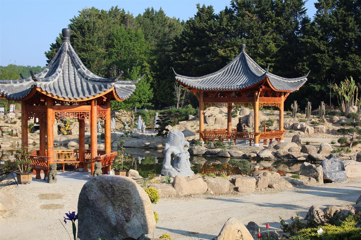 Nouveauté 2023 : venez découvrir le Jardin Chinois, le 7e jardin construit sur le parc. Ce jardin animé par des trésors allie l’architecture (pagodes, pavillons…) et la nature (bonzai, plantes et pierres…) C’est le résultat de 18 mois de travaux, et une transmission de savoir faire ancestral entre la Chine et la Bretagne ! Vous y découvrirez des statues telles que Boudha, le lion chinois et bien plus encore. Vous êtes invités à participer à une jolie tradition chinoise : déposer un voeu sous la forme d’un billet que l’on place sous une tuile avant de la poser. Au menu également, la découverte des bonzai géants; vous saluerez aussi Casimir le Buffle qui veille sur les jardins chinois…