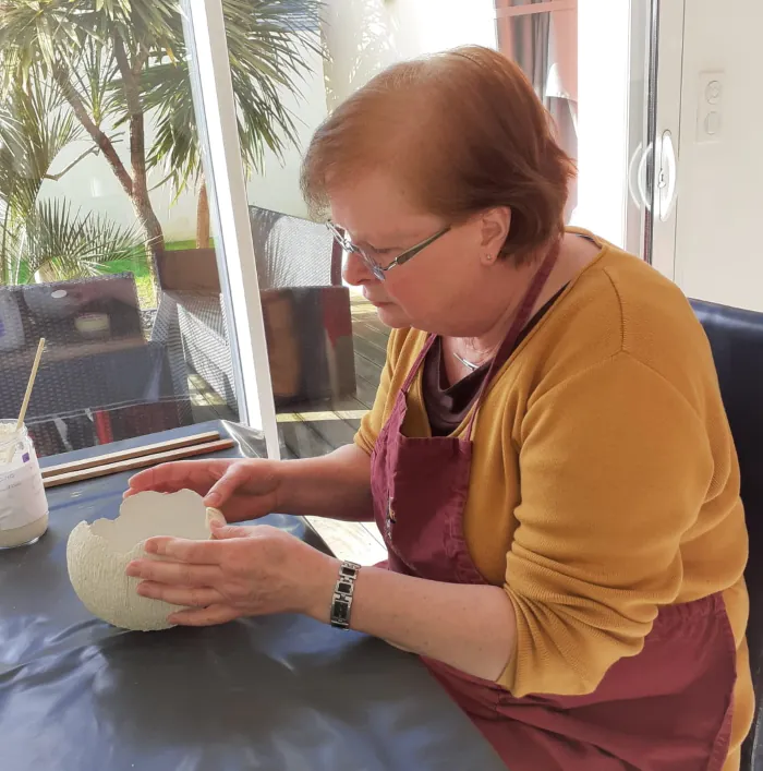 Siglinde Fougères, alias Sigi Fougères, est architecte de profession. Elle aussi a exposé dernièrement à la galerie Stal-Arzoù ses nouvelles créations. C’est dans les années 1990, qu’elle se passionne pour l’encadrement. Plus tard, elle découvre la céramique et ses techniques qui sont une vraie révélation pour la créatrice. En 2019, elle s’installe dans le Morbihan et décide de créer son entreprise afin de se consacrer entièrement à ces deux activités. Dernièrement, elle a présenté ses rakus et ses bijoux en porcelaine.