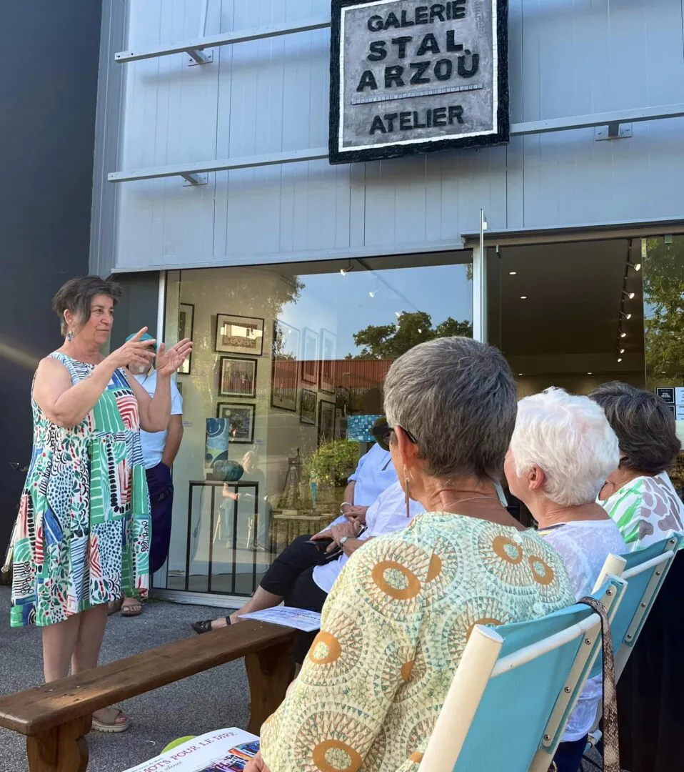 Une rencontre inédite et conviviale s’était déroulée le vendredi 7 juillet 2023, organisée par la Galerie Stal Arzoú : la peintre de Baden (56) Ely Ondre avait animé une conférence devant un public attentif. L’artiste a fait découvrir son monde silencieux, celui des personnes malentendantes, qu’elle traduit dans ses peintures avec une multitude de couleurs, de collages et de croquis. Elle a partagé son carnet de voyage Des mots pour le dire, dans lequel elle exprime le bouleversement de sa vie et la révélation qui l’a libérée. Elle a également présenté son carnet de voyage avec notamment une série de peintures inspirées et réalisées après sa découverte du désert marocain. Elle proposait alors une balade entre ses tableaux : Lettres hébraïques contemporaines, toiles à l’huile, à l’acrylique, des collages, des techniques mixtes, etc.