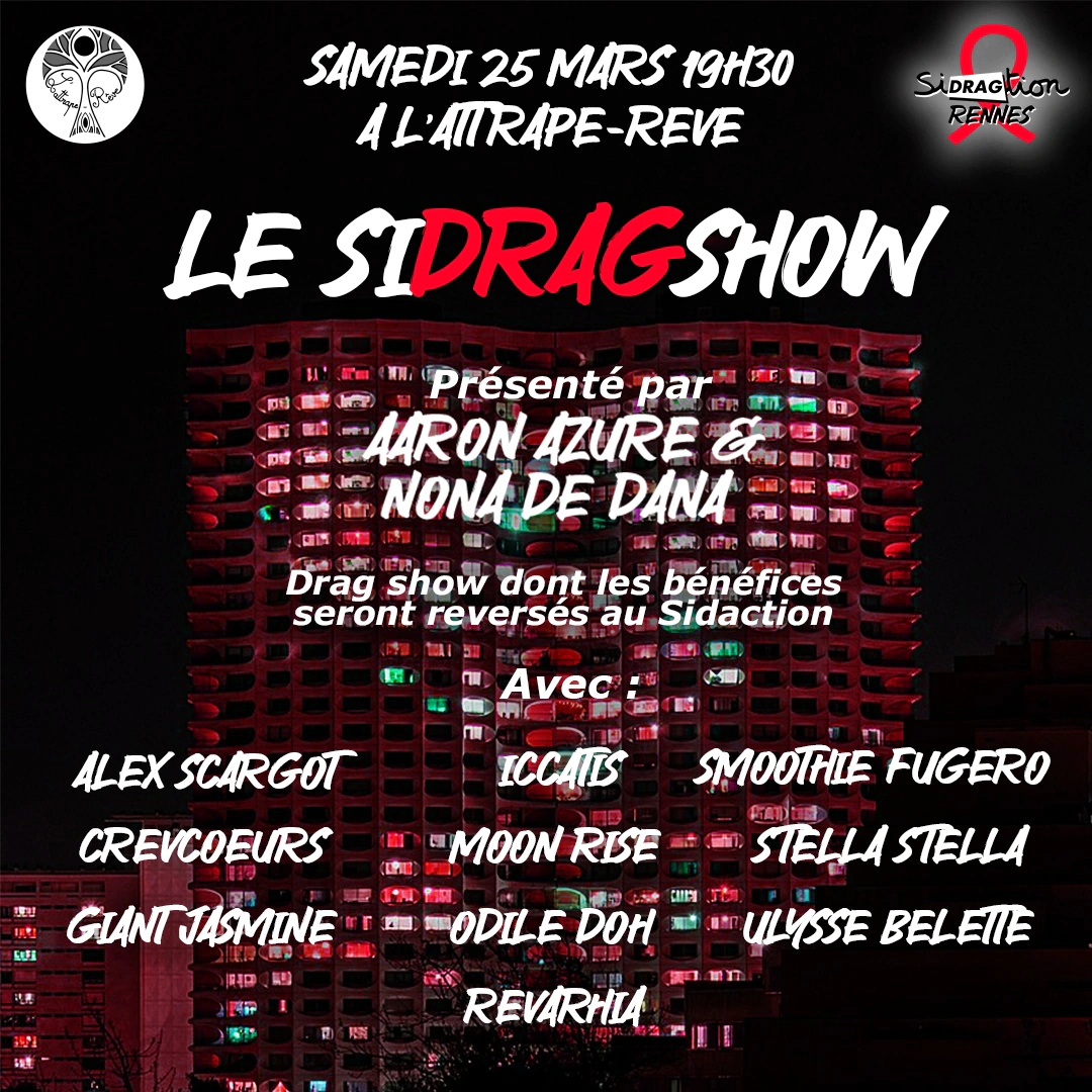 Sidragtion, c’est la communauté drag qui prend part au week-end du Sidaction, du 24 au 26 mars 2023. Rennes se joint au mouvement pour la première fois cette année avec une série d’événements organisés par les artistes drags de la ville. Au programme, collectes de fonds, actions de prévention et spectacles drag en tout genre.