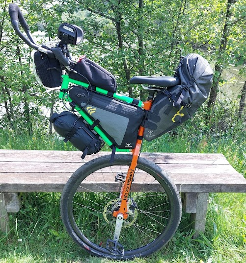 Simon Jan – L’année dernière, j’ai fait un voyage dans les Alpes à monocycle qui s’est très bien passé : 650 km, 14000 m de dénivelé, sur 9 jours. Je voulais remettre ça dans les Pyrénées. C’est un projet que je prépare depuis 1 an : j’ai commencé à réfléchir à un trajet, à un monocycle plus optimisé. Il y aura environ 900 km et 22 000 m de dénivelés. Mon monocycle est conçu pour ce trajet là, mais il reste très polyvalent. Il est optimisé pour mettre des bagages et éviter un sac à dos : ce sont 5 sacoches de bikepacking. Le cadre est fait sur-mesure. J’ai également un guidon qui permet de répartir les appuis et de reposer les mains.