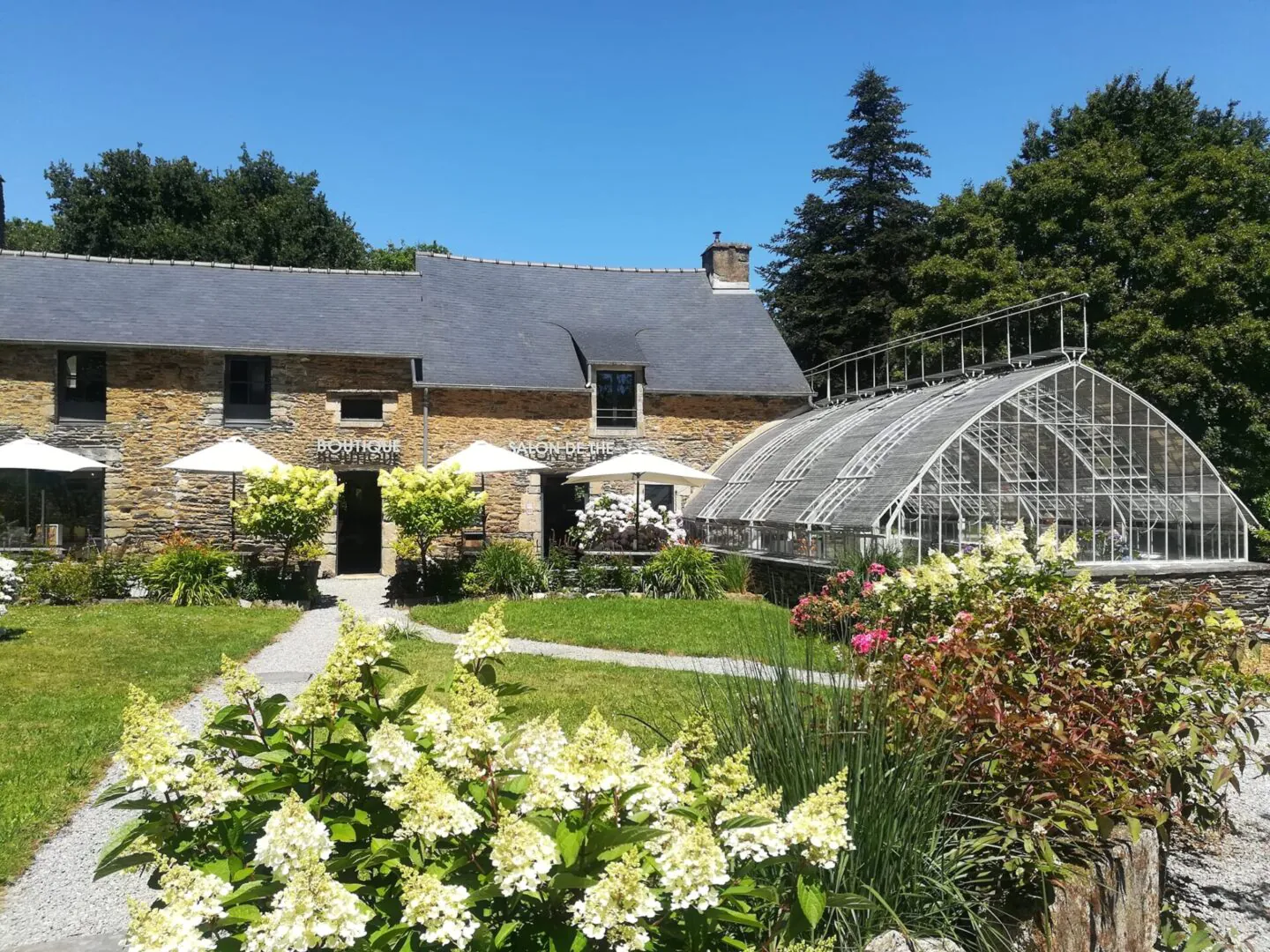 Régulièrement, et ce depuis la reprise de l’entreprise par le couple en 2008, des nouveautés ont été créées. Un salon de thé est d’abord né, histoire pour le public de se poser, de se rafraîchir et donner l’occasion aussi de goûter à des saveurs atypiques, comme les infusions à l’hortensia ou le miel issu des ruches de la pépinière. Dans le même bâtiment, vous trouverez la boutique souvenir où l’hortensias est représenté dans tous ses états illustrant des créations artisanales : livres, carteries, articles de jardin, broderies, vaisselles, etc. Tous ces articles sont commercialisés à l’effigie de la pépinière, une jolie idée cadeaux au retour de ses vacances en Bretagne. En 2021, ce fut un tunnel de 1000 m2 pour la partie production. Ce sont sous les tunnels que s’observent les ventes. Le cœur de l’activité de la pépinière est la préservation de variétés anciennes et la vente d’hortensias dans toute l’Europe.