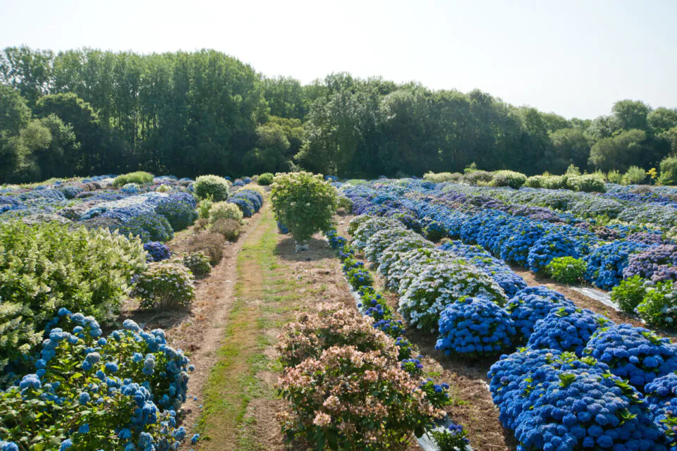 Des hortensias à perte de vue font de la pépinière Les Hortensias du Haut-Bois un site unique en Europe. Les chiffres donnent le tournis quand on sait que la pépinière cultive, en pleine terre, plus de 50 000 pieds de cette fleur emblématique de Bretagne sur 13 hectares de terrain. Elle propose un panel de 750 variétés différentes d’hortensias, de son nom savant les hydrangeas. L’espace de vente du large assortiment de ces merveilles s’étale sur 3 500 m2. La collection du Haut Bois est classée au Conservatoire des Collections Végétales Spécialisées depuis 2019.