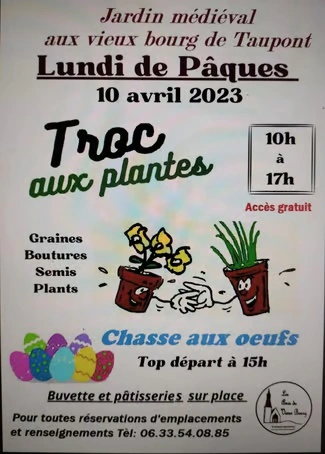 Lundi 10 avril 2023 : Troc Graines et plantes, de 10h à 17h, au Jardin de la Cour Pic-vert du Vieux Bourg à Taupont (56) (derrière la chapelle Saint-Golven)