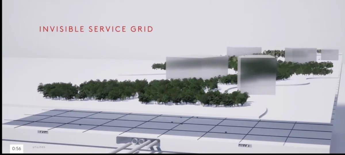 Cette vidéo promotionnelle explique que les villes actuelles sont « saturées par leur propre croissance, qu’il faut repenser la chose urbaine, et pourquoi pas imaginer des villes sans voitures, sans rues, où l’on construirait autour de la nature et pas sur elle. The Line, une ville nouvelle qui devrait être inaugurée en 2050 et recevoir un million d’habitants. Un axe unique long de 170 kilomètres et entouré d’immeubles. Une ville propre où tous les services assistés par l’intelligence artificielle seraient accessibles à 5 minutes à pied, et les autres déplacements se feraient sous la terre par différents moyens allant jusqu’au 500 kilomètres/heure. Bienvenue au jardin d’Eden tecnogreenwashé que présente avec un enthousiasme dénué de toute critique The Saudi Gazette :