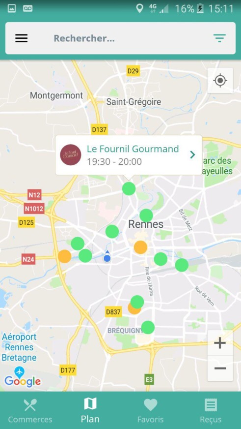 Cela dit au vu du nombre du peu de paniers actuellement disponibles à Rennes, si vous cherchez un panier intitulé « régime spécial », vous aurez sans doute peu de chance d’obtenir une réponse. On aimerait voir plus de commerces partenaires, mais également une barre de recherches plus efficace dans l’appli. Pour le moment, les commerces sont géolocalisés et on voit la carte avec des points verts qui nous indiquent où se trouvent les commerces ayant des paniers disponibles.