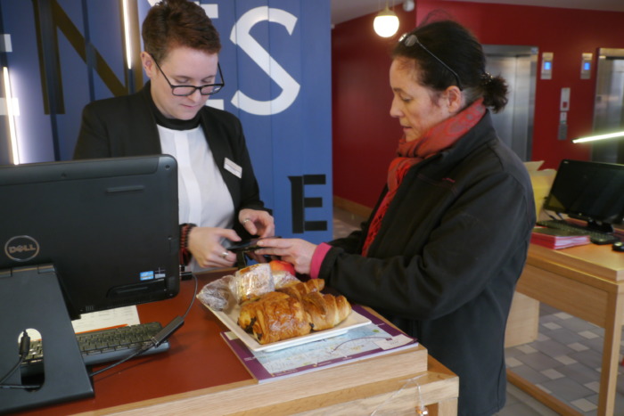 L’ensemble ayant été prépayé via l’application, nous pouvons repartir avec les aliments dans notre propre sac – en effet dans un but écologique l’hôtel ne fournit pas de sacs plastique ; elle le précise dans son annonce. À réception de notre plateau gourmand, la réceptionniste de l’hôtel Mercure valide la collecte sur l’application.