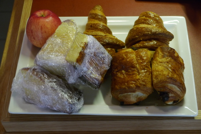 Il nous semble important de souligner le caractère aléatoire du contenu des paniers surprise. En effet si comme on l’a vu, le panier de l’hôtel Mercure était particulièrement copieux, celui de l’hôtel Ibis ne l’était pas autant (il était aussi un peu moins cher, soit 2,50 €). Les paniers varient également dans le même établissement selon les jours, parfois il y a de la charcuterie avec le petit-déjeuner.