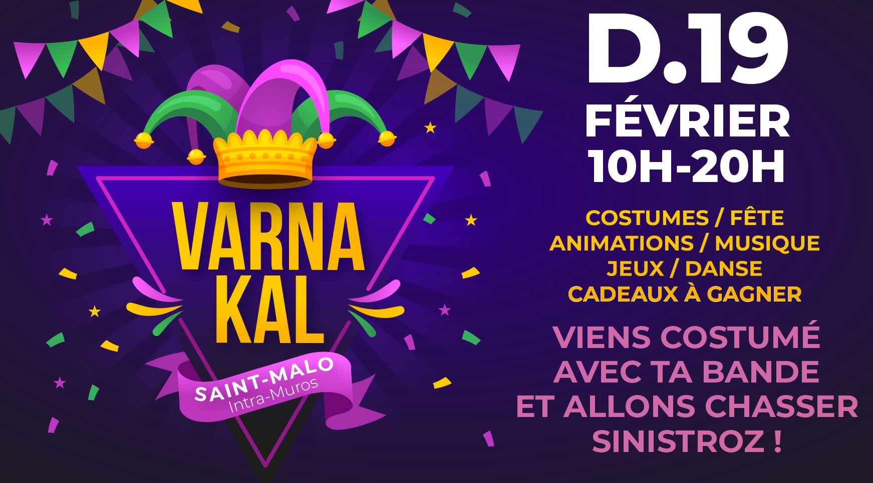 A Saint-Malo, le carnaval Varnakal est une fête gratuite, familiale, amicale et costumée pour fêter la joie d’être ensemble et chasser Sinistroz d’Intra-Muros avec des animations décalées, drôles, musicales et festives. Le second degré y est le bienvenu. L’idée étant de se marrer tous ensemble, de se re-voir, et de festoyer en dimanche 19 février 2023 entre 10h et 20h.