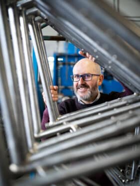 Aymeric Le Brun est le gérant de Cyfac Cycles International à La Fuye (37), une entreprise reconnue au niveau national et international dans la production de cycles sur-mesure en petites séries. Ultra-performants, les vélos Cyfac se hissent régulièrement sur les podiums paralympiques. L’entreprise a participé à la confection du Bycygo pour le cadre en carbone fait sur mesure, les portes-bagages et la peinture à raison de 350 heures. Marc Bertrand est stratifieur chez Cyfac Cycles : son travail est artisanal. Entièrement manuellement, il utilise le pinceau et la pince à épiler comme outils. Les cadres de vélos sont réalisés un par un et en font une pièce unique à chaque fois.